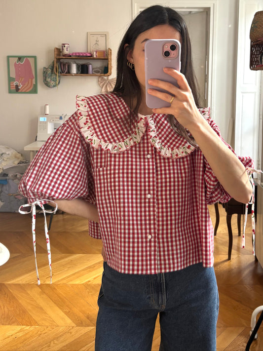 Blouse Solange rouge à carreaux cerises