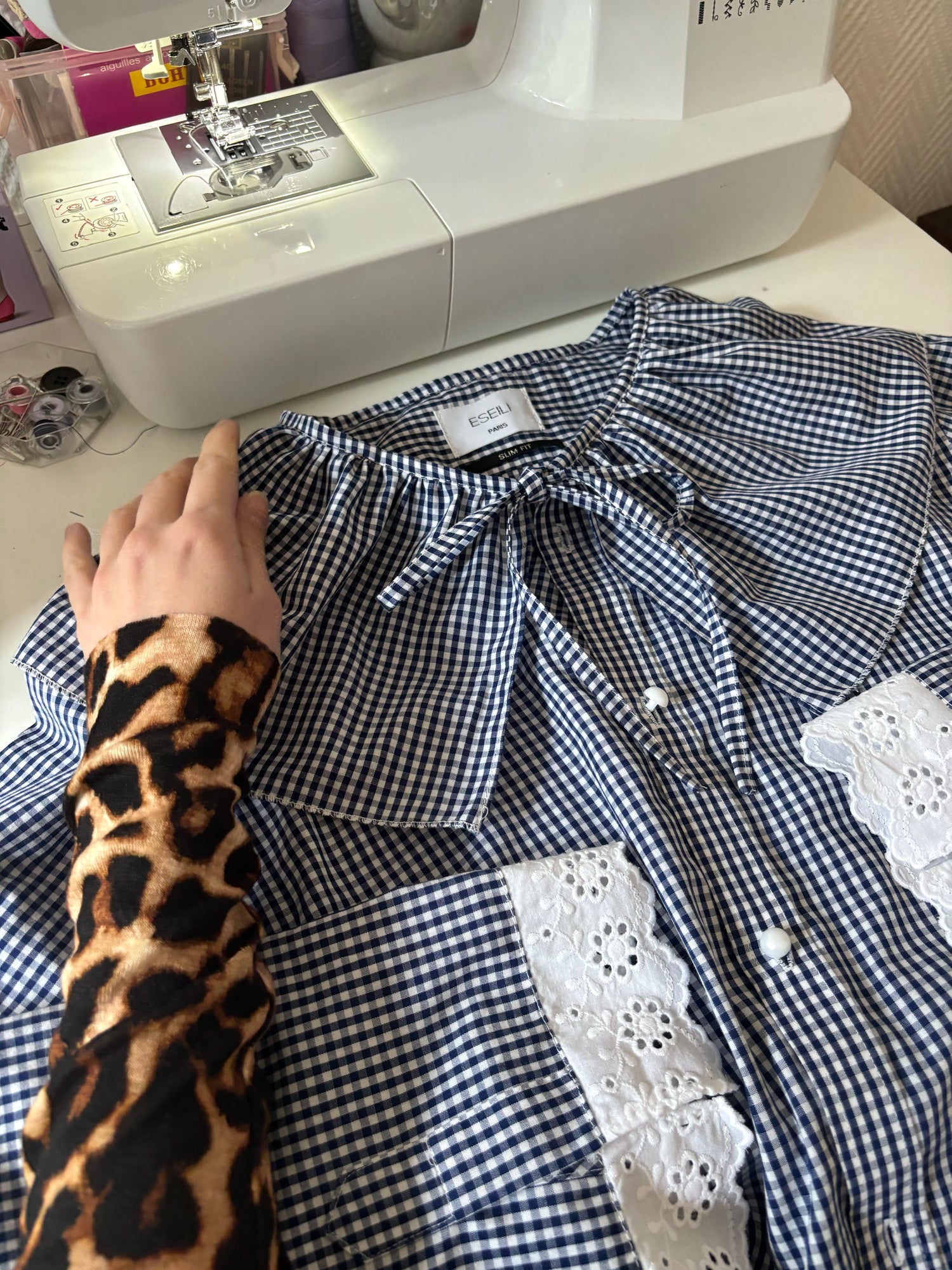 Je chine moi même avec soin les chemises que je lave puis transforme, à la main, en blouse unique. J'accorde une attention particulière aux détails et finitions. J'accorde également une importance à l'association des couleurs et motifs ainsi qu'aux tissus et fournitures qui complètent mes créations.