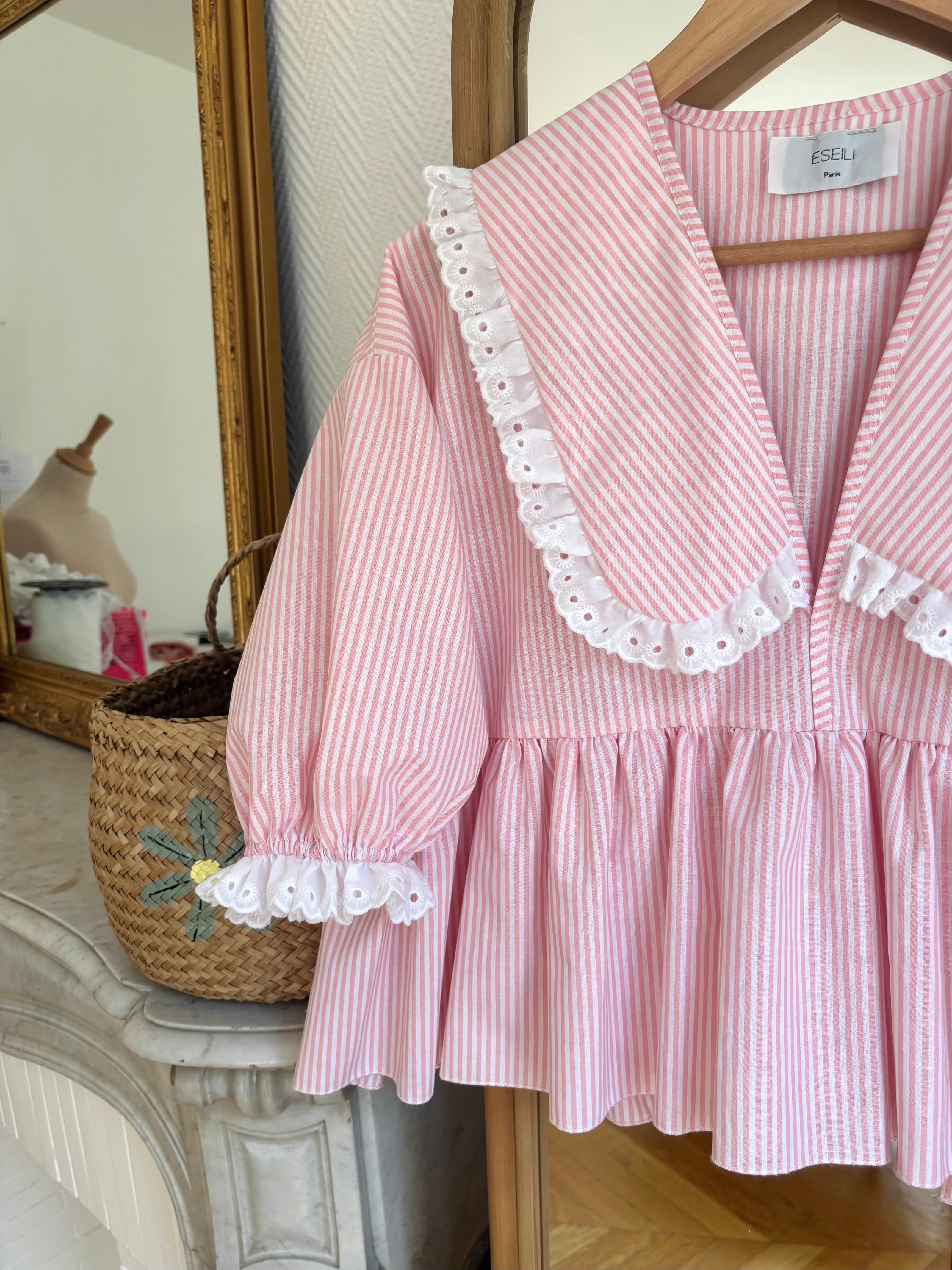 Elise, la blouse upcyclée tout en broderie anglaise.