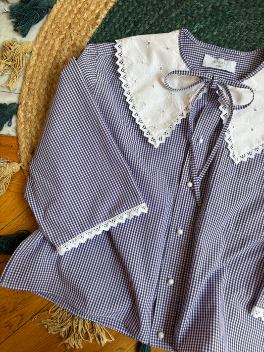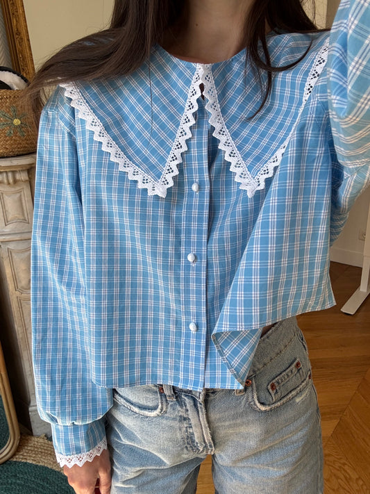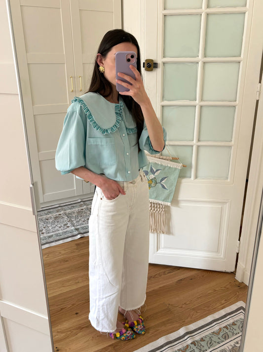 Solange, l'iconique blouse upcyclée à col XL de la marque.