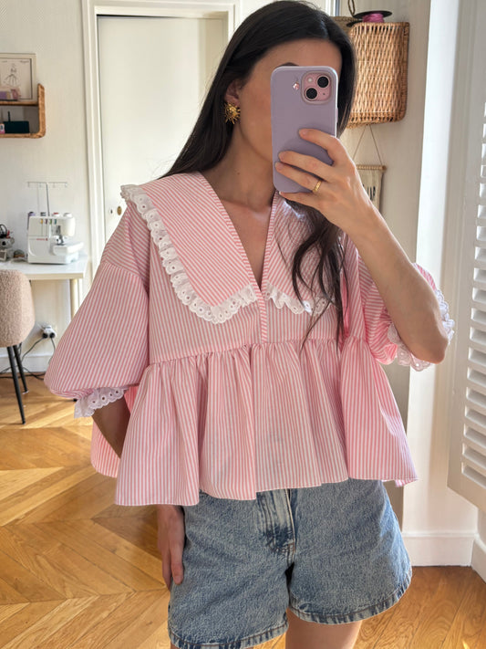 Vicky col XL rayée rose (pièce à la commande)